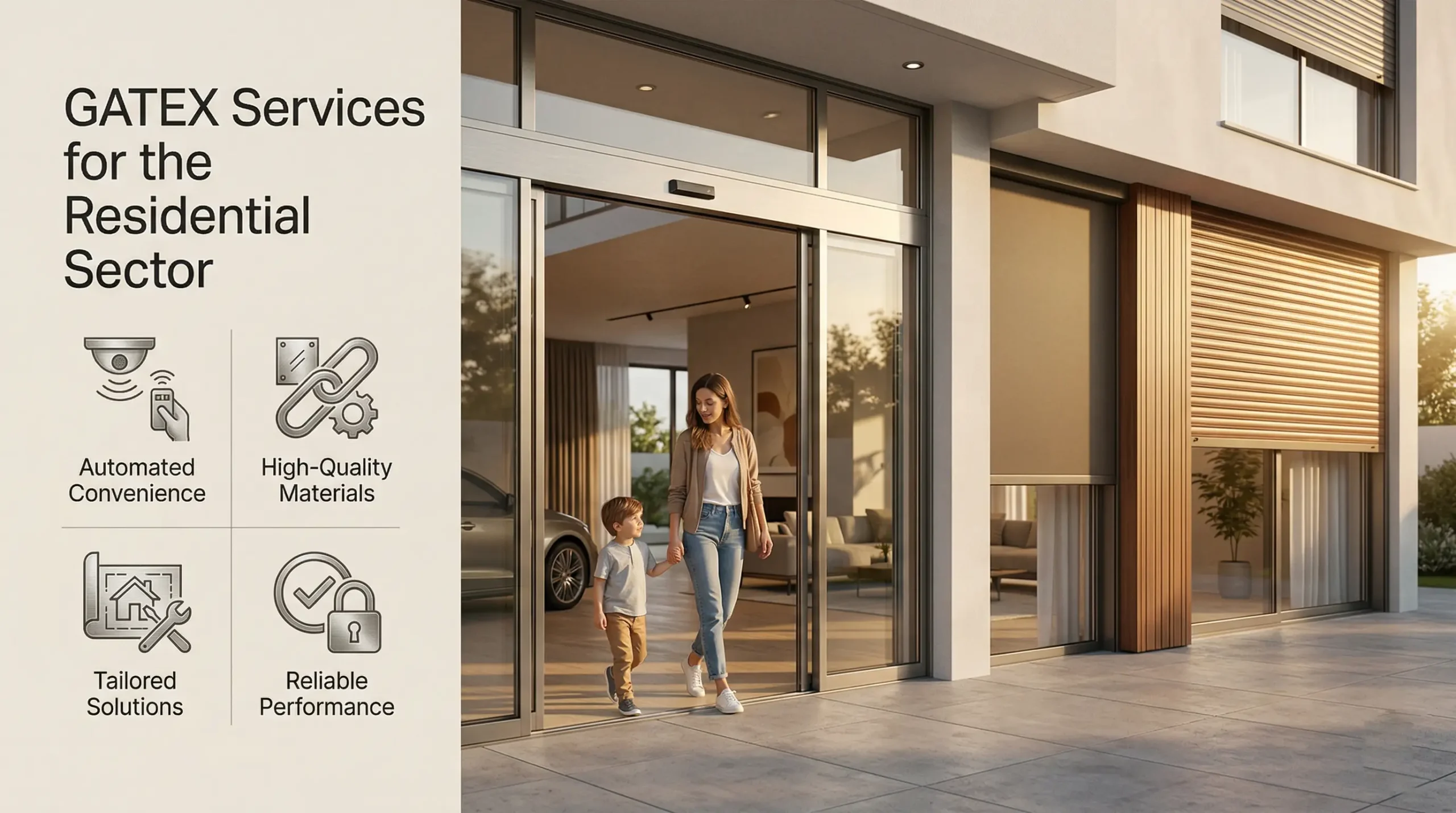 تعرف فيما يلي على أبرز حلول شركة جاتكس للقطاع السكني في مجال الأبواب الأوتوماتيكية وأنظمة الشيش الحصيرة.
