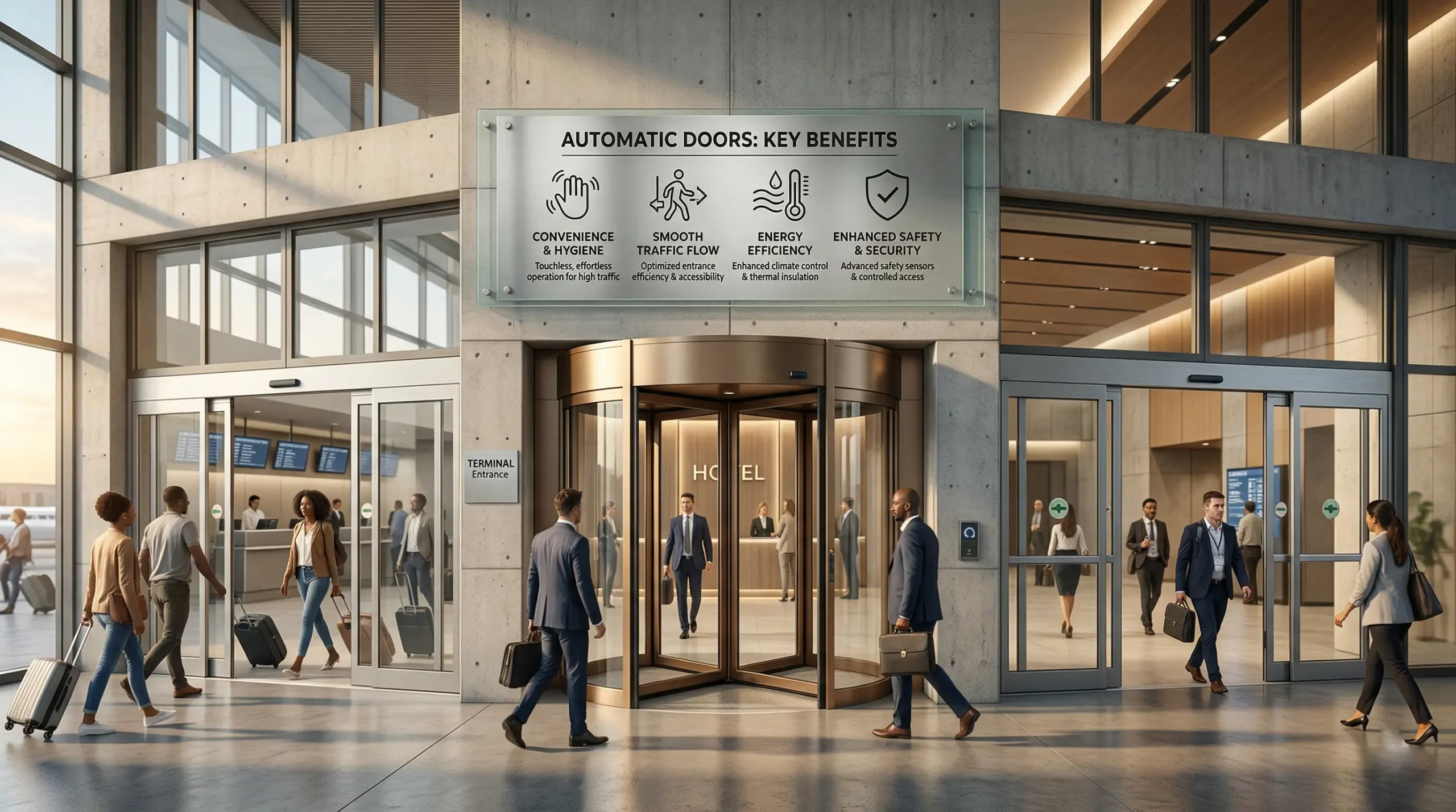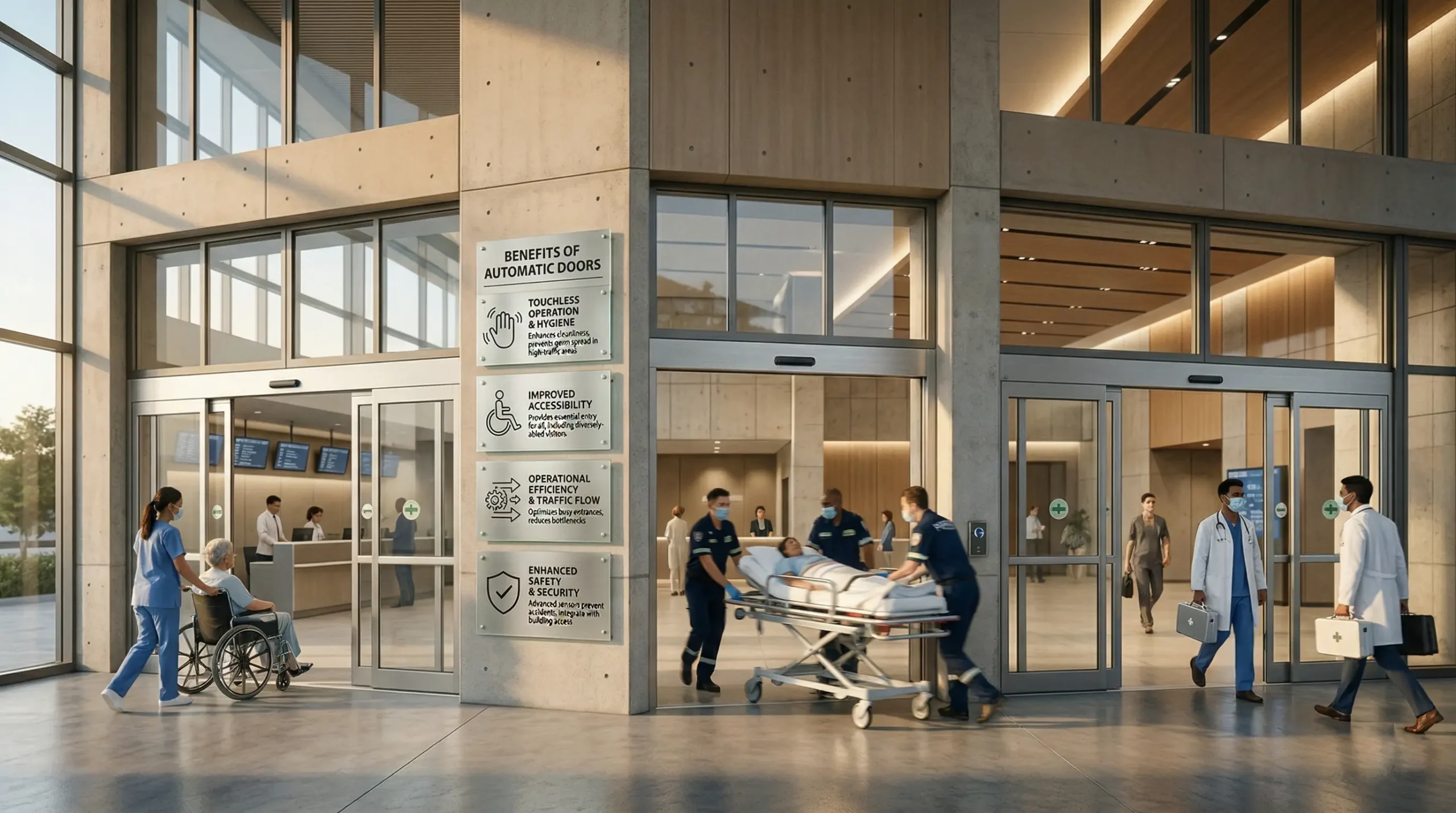 لا توفر الأبواب الأتوماتيكية الراحة فقط، بل تقدم مجموعة واسعة من الفوائد العملية التي تجعلها خيارًا مثاليًا في الأماكن ذات الحركة الكثيفة مثل المستشفيات والمطارات ومراكز التسوق ومباني المكاتب والفنادق والمباني العامة.